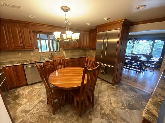 Welcome to this well-maintained, custom designed spacious ranch located on a 5 acre lot. Home has over 3000 square feet which includes a lower level that can be used as a separate living suite. Three bedrooms are located on the main floor as well as a den/office fully lined with cedar and Hardwood floors. Formal living room with brick fireplace & formal dining room with large picture windows and custom stain-glass which adds natural light. Incredible family room with trey ceiling, large kitchen, & two living spaces. Home boasts of three updated kitchens, Custom Amish built cabinets, Stainless appliances & plenty of storage. Solid Oak Six-panel Doors Throughout. Three separate zoned heating systems and A/c. 200 amp service and an additional 100 amp service. Newer flooring throughout. Ceiling fans in all bedrooms. Two additional cedar-lined closets located in lower-level. Additional lower-level Three season room. Whole house fan. Well Maintained Property. Generous Closet Space