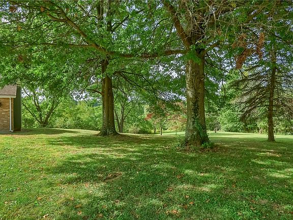 Nestled on 8.91 acres, this country ranch home offers 4 bedrooms and 2.5 bathrooms. It features an open concept kitchen and a bay window eat-in area, formal dining and living room, and a vaulted family room with a floor-to-ceiling stone wood-burning fireplace. Sliding doors lead to a three-season room, outdoor patio and a fenced in backyard. The corner primary bedroom includes a walk-in closet, and ensuite bath. Two additional bedrooms and a full bath complete the main level. The walk-out basement offers a bonus fourth bedroom (or family room/home office) with a walk-in cedar closet, and a half bath. Imagine new hardwood floors throughout, adding warmth and elegance. The kitchen could be modernized with sleek quartz countertops, stainless steel appliances, and custom cabinetry. Bathrooms could be transformed with contemporary fixtures, elegant tile work, and luxurious soaking tubs. Located minutes from Zelienople and Cranberry and part of the Freedom School District. 1 YR home WTY