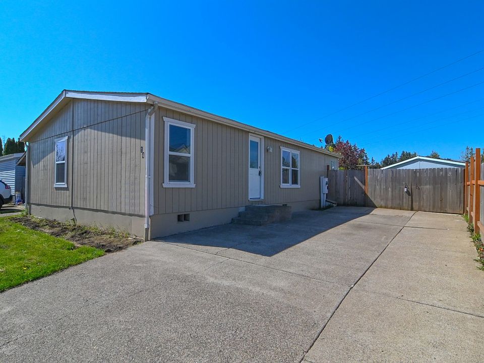 Great manufactured home on it's own land with a fenced back yard. Open floor plan in main living area with bedrooms nicely separated. Vaulted ceilings throughout. New flooring, new paint. Updated main bathroom. The master suite offers a private bathroom and walk-in closet. Close to shopping, schools, bike/walking paths, busline and easy access to main roadways for easy commute.