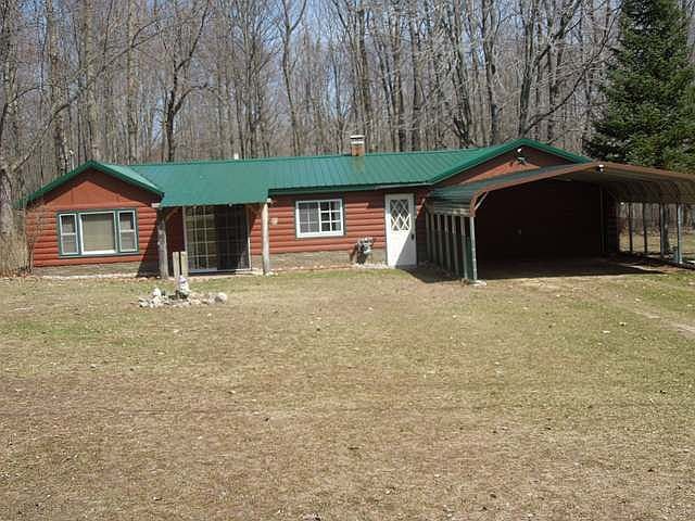 Sportsman paradise! Move right in with no worries, New carpet, new kitchen flooring, new septic, new metal roof, clean and cute with knotty pine interior in kitchen and dining area. 1/2 log siding across the front, attached 2 car garage insulated with a carport. Access to Half moon Lake with association optional of $50.00 a year. Bear Lake close with excellent fishing. 20 lakes within 20 miles and ORV trails and state land near for all your up north activities.