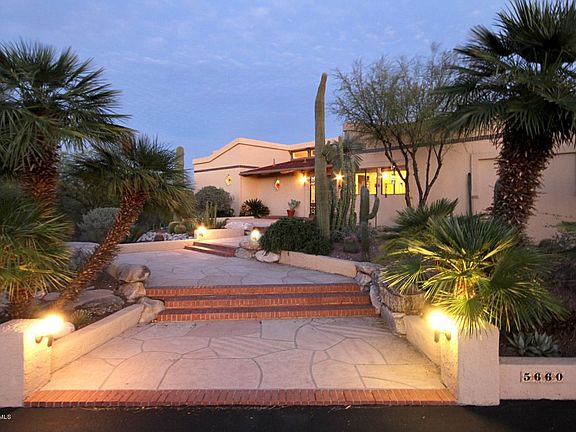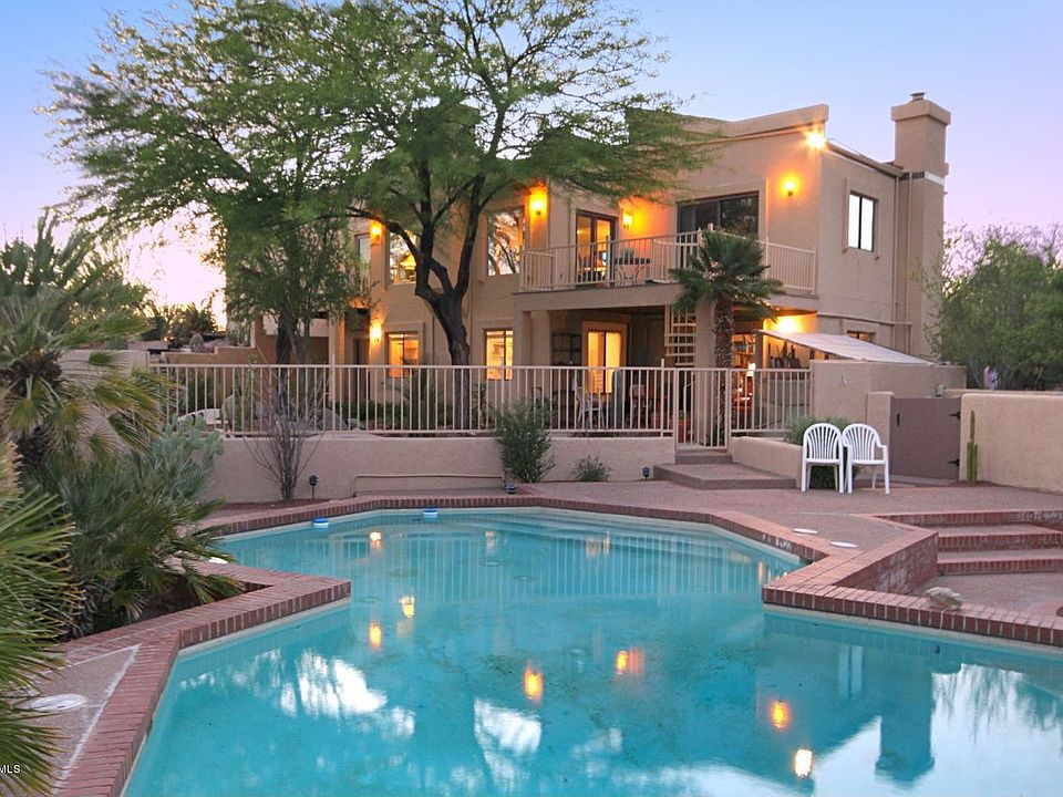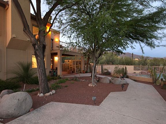 For more information on this property, contact the Listing Agent, Shirley Holle at (520) 918-5960 or shirleyh@LongRealty.com. Magnificent Lot-Mountain Views-City Lights-Solar Heated Pool w/Ramada. Wide flagstone steps lead to the front door and entrance to the main floor. Remodeled kitchen w/birch cabinets, subzero refrigerator, center island, corian counters. Living room w/fireplace, formal dining room and master bedroom on main level. Natural light fills the living areas. Lower level family room w/fireplace, 3 bedrooms, two full baths, laundry and storage rooms. One bedroom may be guest room w/private bath and sliding door to patio. Two balconies off main level and 2 covered patios on lower level. Circular drive. Cul-de-sac location. Circular stairs from balcony to lower level and swimming pool. Many cactus add to the beauty of the yard with walkways and patios. Lot extends beyond fenced area to wash.