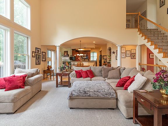 Freshly updated with new carpet & paint! This beautiful walkout offers a flowing floorplan and a private setting. Features include 19 ft ceilings in the Great Room-offering excellent natural light. There is a Den w/ French doors, formal & casual dining, and an inviting hearth room with fireplace. The cherry kitchen has a walk-in pantry, built-in office, and immense snack bar. The main floor Master Suite has oversized bay windows to take in the wooded view, and a lovely bath w/ dual granite vanities & tiled shower. Upstairs consists of 3 Br's plus bonus room w/private bath, and the lower level has 2 more BR's (one used as Den), Family Room & game room (plumbed for a kitchen). Nestled on a wooded 1-acre lot with peaceful water view, and a centralized location to both Portage and Kalamazoo!