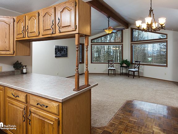 Wonderful Prowfront Ranch w/Vaulted Ceiling & Large Picture Windows for Mtn & Knik Arm Views! Prvt Backyard w/2 Sheds, Fire Pit, Newer Chain Link Front Yard Fence. RV Parking. New Paint & Carpet! Newer Roof, Gutters, Furnace, Water Heater,& Garage Heater. Open Kitchen/Dining/Living Area. Lovely Master w/ Sliding Door to Back Deck. Updated Bthrm Boasts Wainescoating, Walk-In Shower. Spacious Garage