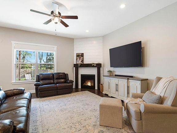 Welcome home to this beautiful 4-bedroom, 2-bathroom place in Pearson Park, just 5 minutes from Hwy 65 and Division (and Buc-ee's, too!). Enjoy summer nights in your quiet and private back yard, which backs to an open field with mature trees will soon be full of fireflies. Step into this stylish home where comfort meets practicality for a lifestyle that's both relaxed and functional. Enjoy the spacious 10 ft ceilings with exposed-beam accents, and easily entertain guests and enjoy your family in the open floor plan. With a 3-car garage, you'll have plenty of room for parking and storage, freeing up space inside the house for living and relaxing. Step out onto the large covered back patio, perfect for BBQs or just kicking back and enjoying fresh air.Inside, you'll find built-in features and modern finishes like white cabinets, engineered hardwood floors, and granite countertops throughout. The kitchen is equipped with a gas range for easy cooking, and a gas log fireplace adds warmth and coziness to the living room.Outside, the yard is fully landscaped with sod, irrigation, and fencing, providing a low-maintenance outdoor space that's great for kids and pets to play in safely. Experience the convenience and comfort of this charming home, where every detail is designed to enhance your everyday living experience.