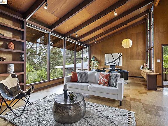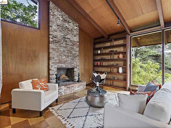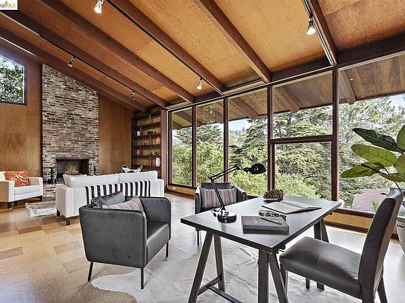 This architecturally unique and private A-frame Chalet stuns atop an upslope lot surrounded by large, lush, and level grounds. Soaring vaulted ceilings, natural wood paneling, and an abundance of natural light through expansive walls of glass enhance a contemporary but rustic appeal. A whimsically artful and fully equipped compact kitchen is a focal point beyond the dining area that flows into a generous living area adorned by an impressive fireplace and built-in shelving. In addition to a sizable bedroom with generous closet space, an upstairs open loft provides flex space for work, hobbies, or guest quarters. The ample and sunny patio with a bricked bbq of the past, is perfect for dinners al fresco and completes the indoor/outdoor flow from a massive door framed by walls of windows. The glorious rear garden with its serene koi pond, boasts exotic mature plants as wells as plumb, apple, fig, orange, and lemon trees and is served by lovely meandering pathways of stone. Open S/S 2-4.