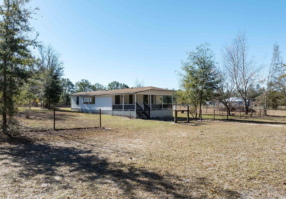 Gorgeous Mobile home 2/2 on a large lot with a big storage/Garage/work shed. Beautiful oak trees and located in the country on a quiet paved road. Fenced and cross fenced on a high and dry 1.42 acre lot. Updated home with a brand new roof. Less than 20 minutes from the town of Live Oak. New appliances will be provided before closing. Already surveyed.
