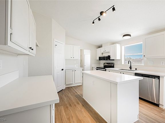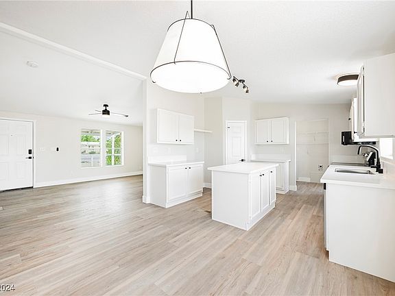 Designer-transformed 3 bedroom dream home in the high sought-after Cottonwoods! This stunning home received a head to toe makeover courtesy of a team of professional designers to include full interior/exterior paint, all new LVP flooring, upgraded quartz counters, bespoke fixture and hardware package and so much more! The floorplan features vaulted ceilings, spacious covered patio, open kitchen with island and plenty of storage, primary bath with separate tub/shower and plenty of natural light! Ideally situated in the South end of town in the Cottonwoods with easy access to Vegas and beyond!