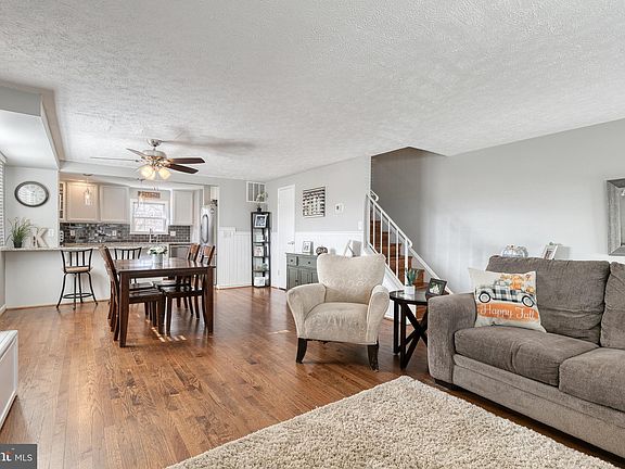 Welcome to 5662 Braxfield Road! This adorable end-of-group townhome in Hunstmoor Village North boasts 3 bedrooms, 1 full bath and 1 half bath. The open floor plan offers a spacious living room, dining space, a breakfast bar, and updated kitchen with stainless steel appliances, granite counter tops and gorgeous tile backsplash. Gleaming hardwood floors throughout the main and upper levels, with ceiling fans in the dining space and all bedrooms. The lower level family room features tile floors, while the laundry room offers a washer, dryer, utility sink and toilet. New architectural roof in 2014 and new HVAC in 2021.