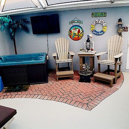 A charismatic residence influenced by the architecture of Key West, is in a vibrant gated, harbor/boating community perched within lush, wooded confines along the Braden River. As you enter the property you will find a lovely family room, modern kitchen and more. Three bedrooms and two full baths are tucked away on the upper floor away from the common areas and a 1/2 bath conveniently downstairs. The layout includes a beautiful, screened lanai with a hot tub and luscious garden, which leads to the convenient two car garage. A private nook adjacent the kitchen where you will find new appliances featuring a wine fridge. All mechanicals (air conditioner, air handler and hot water heater) were professionally replaced in 2022. Washer and dryer, all kitchen appliances, paint and carpeting were upgraded within the last two years. New roof was put on in 2023. Much of the furnishings will remain, including many built-ins like the upstairs desk and murphy bed, hot tub, and garage cabinets. Live the resort life everyday with community amenities galore: Dog Park (Mallory Square). Club house, Heated pool, Whirlpool and Fitness center. Nature trails, Kayak launch and Marina. Yet the residence is located near everything, schools, shopping, beaches. The HOA (The Harborage on Braden River HOA) is well funded and provides landscaping, exterior painting (every 7 years) and roof maintenance (replaced every 15 years)