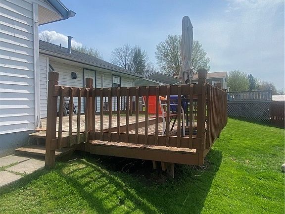 This ranch style home offers a split floor plan with 3 bedrooms, an expansive, paneled living room, formal dining room, kitchen, and 1st fl laundry, all with easy to maintain laminate flooring. Many updates include a 5yr old roof and 4-5 yr old furnace with central air, updated electric, and dual pane windows. Step outside onto the deck, perfect for outdoor enjoyment and gatherings. The 2-stall garage provides convenient parking and storage space.