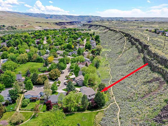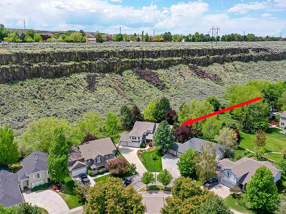 Tucked into the privacy of Surprise Valley’s basalt cliffs and bordered by both lushly planted common area and the wild beauty of BLM lands and walking trails! Irrigated park-like setting with pathways winding between a cascading waterfall, fire pit, raised garden beds, multiple patios, and fenced dog run. An impeccably maintained interior includes hardwood flooring throughout the main level, soaring two-story great room with views to the historic Oregon Trail, kitchen w/granite countertops, Jenn-Air gas cooktop and multiple eating areas. A flex space offers an additional sink with counters and cabinetry for hobby and art projects, study space, and deep storage. Main level guest suite w/walk-in closet accommodates multigenerational living. The split floorplan offers an upstairs owner’s suite augmented by private viewing deck, separate shower and luxe 11’x15’ walk-in closet. The 240 sq ft bonus room could serve as a 5th bdrm. Roof in 2022, new HVAC with built-in whole-house humidifier and air purifier 2019