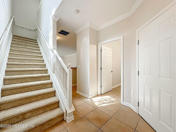 Spacious 3 bedroom and 2.5 bathroom condo with many storage space. This unit is a corner unit. Kitchen, living, dining area located downstairs. All the bedrooms are upstairs. The master bedroom has a walk-in closet and a garden tub. It has screened lanai. Washer and dryer included. This gated community offers a pool and fitness room. Whole inside has been freshly painted.The community is located in southern Duval County on Greenland Road east of Old St. Augustine Road and west of Interstate with a convenient location near schools, office parks and shopping.