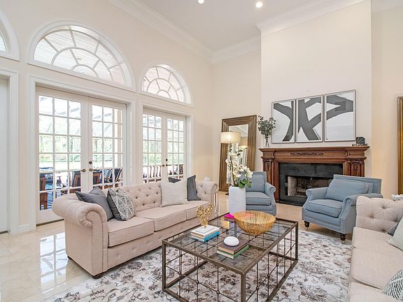 This incredible, bright & luxurious, 4BR/41/2BA + den, split-plan estate home with a pool, sits on a gorgeous lushly landscaped 1.5 acre lot in the exclusive gated community of Steeplechase. Top-of-the-line features include soaring ceilings with thick crown molding, marble & wood floors throughout, 3 fireplaces, glass-paned French doors leading out to the patio from multiple rooms, a temperature-controlled wine room, a gourmet kitchen with quartz countertops and never-used high-end stainless steel appliances, a huge master suite with a spa-like bath, and an amazing outdoor living space with a screened-in covered loggia, outdoor kitchen, custom pool with lap area, gazebo, and tennis court. The home also has a whole-house generator, Cullligan water purifier system, and 2014 AC units.