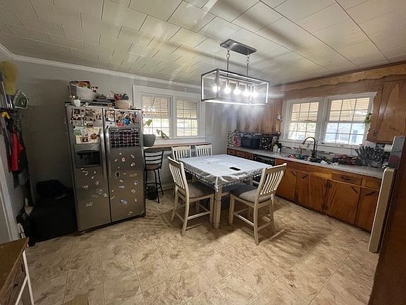 Cozy brick home with over an acre, large kitchen, two dens, large covered deck. 24 x 30 metal building, extra storage building, short drive to town, windows have been replaced.
