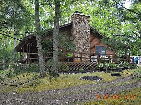Beautiful 3 bed 2 bath immaculately maintained log home on 3+ acres private wood lot in small private development. Less than 2 miles to 7 Points Entry Station and 1/2 mile to Allegrippis Trails. Oversized detached 2 car garage with electric and additional single car sized storage building for your mountain bikes, kayaks, ATVs, etc. Perfect vacation home or full time residence. This home will be available for purchase beginning June 9, 2023.
