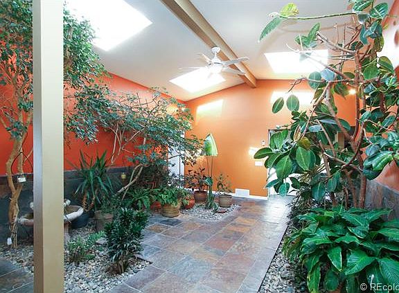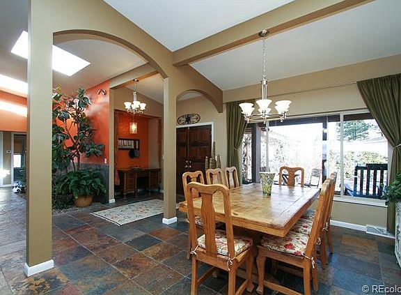 Escape city life, come live in Happy Canyon. 2+ acres, 5 bdrms, 2.5 baths Classic Ranch Style warm & inviting home, 3,250 sqft living area on one floor. Spacious entry, vaulted ceilings showcase an indoor atrium w/plants reaching just below the skylights. Remodeled kitchen, contemporary cherry cabinets, butcher block island, granite countertops & top of the line stainless appliances. Breathtaking Front Range views, spectacular sunsets from back patio & one of a kind level lot beckons those that want plenty of room to romp, yet easy access to Castle Rock & Denver Metro. Large covered porches, new paver patio, outdoor gas fire pit & eating area. Love to garden? Drip irrigation & fenced, multi-raised-bed garden for growing all those veggies. Mature landscape; trees, shrubs, flowers, rose & herb garden, grape arbor entry adds seasonal beauty and sets off the natural stone sided ranch home. More room to expand in full unfinbasement or a great storage area. Includes Buyer's Home Warranty.