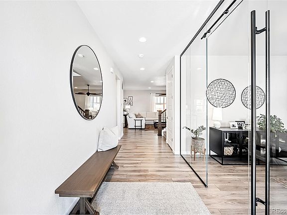 Elegance and functionality fuse within this pristine Sorrel Ranch home. Boasting the Richmond American Hemmingway floorplan, this residence sprawls w/ timeless design and custom light fixtures throughout. Upon entry, a custom glass wall greets residents, leading into a designated study. Entertain with ease in an expansive kitchen showcasing stainless steel appliances, gorgeous cabinetry and a vast center island. Vaulted ceilings inspire an airy atmosphere in the dining area offering seamless access to a covered back patio — the perfect setting to enjoy al fresco entertaining. The living area beams w/ warmth and ambiance from a modern fireplace. Upstairs, a spacious loft area offers flexible living space. Five sizable bedrooms include a primary suite boasting a spa-like bath w/ a large walk-in shower. Retreat downstairs to a finished basement to find a versatile rec room. A private side yard w/ a built-in pergola overlooks a grassy lawn. This home is complete w/ a 3-car attached garage.