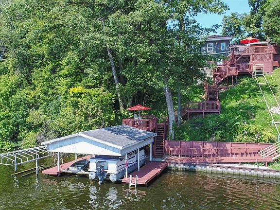 Looking for a charming cottage on the lake? Look no further! This 3 bedroom, 2 bathroom, 1347 sqft cottage sets on main Lake Freeman & has breathtaking panoramic lake views. The nicely improved 80 ft of water front includes a double permanent electric boat lift, 2 docks, & steel sea wall that all can be accessed by the stairs or by chair lift. Outside living at it's best from the multi level decking, covered decking & covered patio all overlooking huge lake views! Updates include newer siding, roof, most windows, gutters & flooring. Additional features include a fireplace, storage shed, ample parking, bonus lot across the street, & a front row seat to the firework shows over summer holiday week-ends. A charming cottage loaded with amenities that can be bought turn key makes transitioning into the lake life enjoyable & easy. What are you waiting for!?