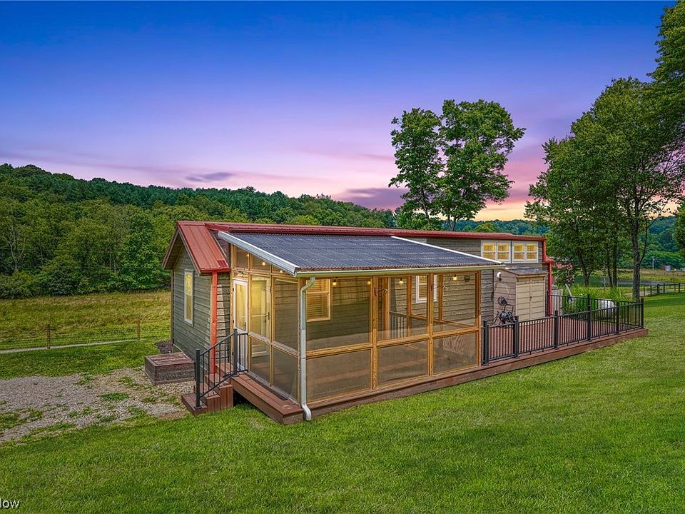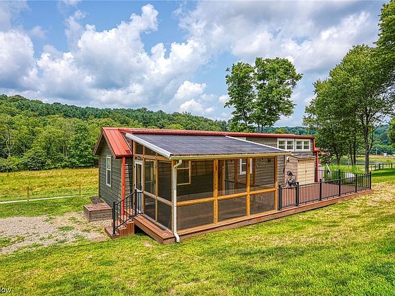 Back on the market at no fault of the sellers! Unique and stunning at the same time.. Check out this adorable 1 BR tiny home or ''getaway'' on 10 acres with a 24x40 pole barn with an attached 12x24 fully enclosed lean to, both with concrete floors and electric. Enclosed lean to is also heated and cooled, making it a great office, workshop, or flex space. Home is fully updated with high end finishes offering stainless steel kitchen appliances including a space saving washer/dryer combo. Interior spaces include a living room, kitchen / dining combo, owner's en-suite with built in storage, extra half bath, and a finished loft. Large deck extends the back of the home including a spacious screened in porch. All has been meticulously maintained. See A2A remarks for important listing information