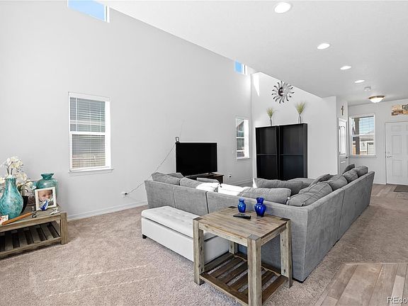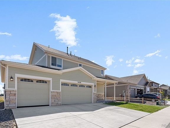 Welcome to your new home in the quiet Blackstone Ranch community! Open floor plan with great natural light throughout. Entryway and kitchen feature a beautiful flooring as well as newer carpet throughout. Huge living room that opens up into a gorgeous kitchen. Kitchen has plenty of storage space with 48-inch cabinets as well as a large pantry. Gorgeous granite countertops and stainless steel appliances make this kitchen really stand out. Upstairs you will find a nice size master bedroom with a walk-in closet and a 5 piece master bath, again with beautiful granite countertops. The secondary bathroom has two sinks and granite as well. The unfinished basement ceiling is 9 feet high, drywalled, and waiting for the new owner's design. Unbelievable 4 car garage space. The 3rd bay is tandem parking or could be made into a great workspace. The home backs to open space with the elementary school nearby! The home features a lot with over 10,000 square feet and professionally landscaped. Plenty of room for a playset or garden! The newer neighborhood features a lovely park and playground. Come and live the good life in the quaint town of Strasburg! 30 minutes to DIA, 45 minutes to downtown Denver.