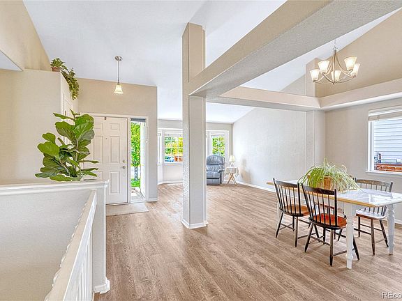 Wonderful ranch home in Woodbridge Station backing to community open space. New LVP flooring greets you upon entering the home with vaulted ceilings and an abundance of natural light. The spacious kitchen boasts SS appliances, quartz countertops and flows seamlessly into the family room. There is also a formal dining room with adjacent living room on the main level along with 2 secondary bedrooms, full bath and laundry room. The primary bedroom overlooks the back yard with open space views and has its own private 3/4 primary bath along with a walk-in closet. The finished basement offers a 3rd non-conforming bedroom with adjacent 3/4 bath plus a large rec room area and even space for an office or work out room. The back yard has been xeriscaped for low maintenance living along with a large deck overlooking the open space behind the home. Fantastic location with quick access to nearby Trail Winds Rec Center, Park Village Pool or Eagleview Elementary School. New exterior paint in 2023, newer carpet, open floorplan, south facing driveway, AC, 2 car garage, backs to open space, finished basement, low taxes - this home has it all. Hurry!