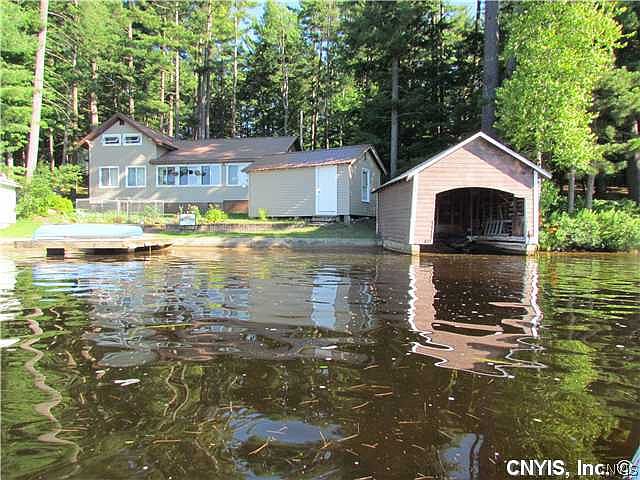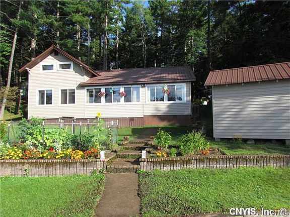 Move right into this year-round home with open floor plan. Modern kitchen, propane fireplace, Separate building which could be used as a bunkhouse, storage shed, detached 24 x 26' garage with 66' of prime water frontage.