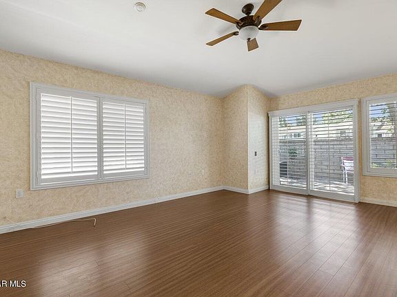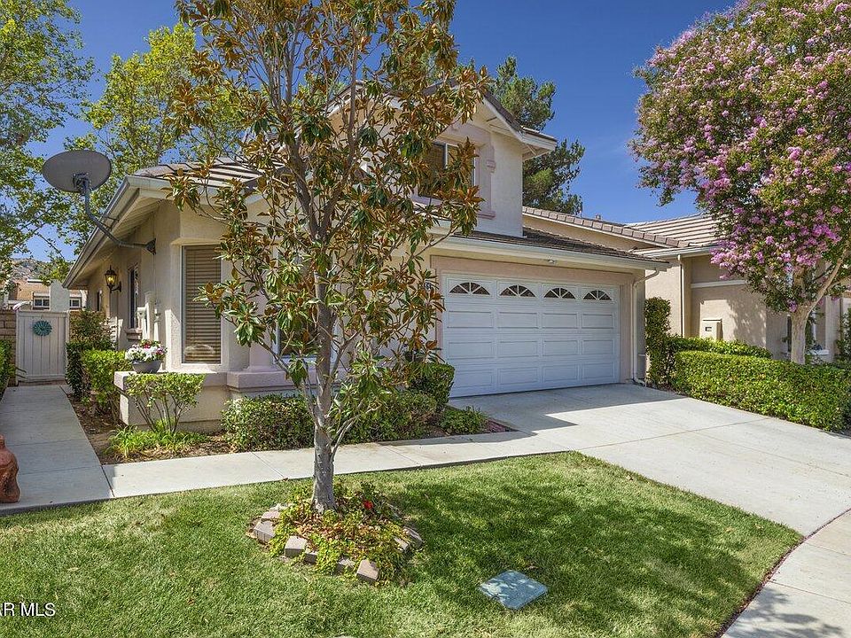 Welcome to Casa Flores, Gated, East Simi Senior Community for active adults 55+. This home is a private, rare Stand Alone model, detached, with no shared walls. 2 Bedrooms, 2 full baths and an additional guest bath. Most living space is on the main level, Downstairs Master Bedroom & en-suite Bath looks out to the private patio. Vaulted ceiling in the living room, with wood-like solid flooring and plantation shutters- opens to the lovely yard. Kitchen is well equipped, with an eat in breakfast nook, and faces the front garden. Upstairs, an open loft space leads to a secondary Bedroom & Bath. 2 car, attached, direct access garage has a wall of built- in cabinets for storage. Community pool & shady park areas within this community.