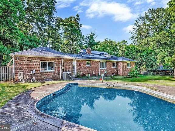 This delightful brick ranch style home exudes warmth and character, set amidst a sprawling 1+ acre lot enveloped by majestic, mature trees. Inside, the home radiates a welcoming ambiance with gleaming hardwood floors and thoughtfully added recessed lighting. The heart of the home is the open living room adorned with a charming brick wood-burning fireplace, enhanced by a skylight and a large picture window that invites in the natural beauty of the surroundings. The primary suite offers a sanctuary of comfort with his & hers walk-in closets and a private ensuite full bath, providing a perfect retreat after a long day. In the heart of the home, the L-shaped kitchen features double ovens, catering to culinary endeavors with ease. Downstairs offers a full unfinished basement framed for a versatile space including a 4th bedroom, 3rd full bathroom, cozy family room warmed by a wood stove insert, convenient kitchenette and bonus rec room adding to the home's appeal, offering plenty of space for relaxation and entertainment. Outside, a 2-car attached garage with a breezeway and additional parking in the horseshoe driveway provide practical convenience. Located in a peaceful, family-friendly neighborhood, the home boasts proximity to shopping, commuter routes, and easy access to Andrews Air Force Base, Washington D.C., and Northern Virginia. This home isn't just a place to live; it's a haven filled with warmth, comfort, and endless possibilities for creating cherished memories. *Pool Condition is unknown. The pool hasn't been used in 3 years. Pool picture has been photo shopped for potential purposes. Basement is framed for kitchenette, living room, full bath, bedroom & bonus room but not finished.* (Home is being sold in "As Is" Condition, Inspections are for Informational Purposes Only.) Accepting Back up Offers