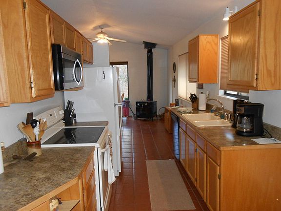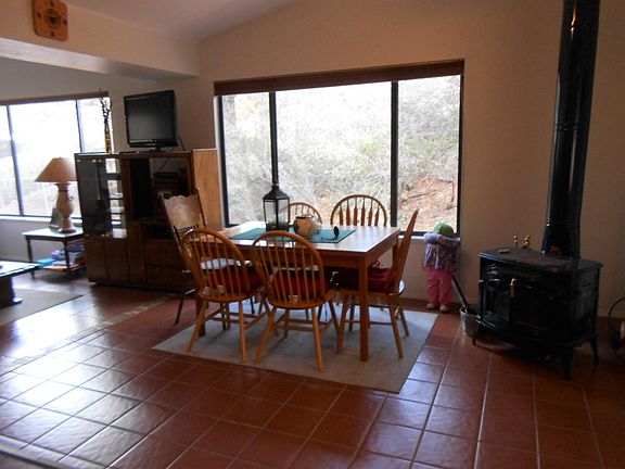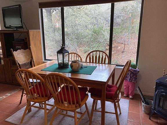Here is your ''Cabin in the Woods''. This cozy cabin has a new woodstove, tile and laminate floors, a vaulted ceiling, and large windows to let the forest feel in. There is a nook for office space, and lots of storage in the hall closets and utility room. Outdoors there is a covered composite front porch with a paver patio, and a spacious, private composite deck with mountain views in the back fo the house. The yard is fenced and there is a fenced garden area with a garden shed/possible workshop. Great vacation rental ! Most furniture will convey. Ready to go.