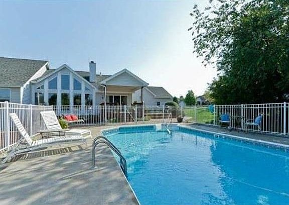 Beautiful 4 bedroom, 3.5 bath home with a perfect setting for entertaining in the desirable Wrenwyck Place subdivision. The updated kitchen has new granite counter tops, 42" cabinets and stainless steel appliances (refrigerator included)! Master bath has been updated. Step outside to a covered deck and patio overlooking your in-ground, heated saltwater pool and a water feature with waterfall. The finished walk out basement has a bedroom, full bath, 2 additional sleeping areas and large rec. room. Each room of main level has beautiful mahogany hardwood flooring, gas fireplace in great room with vaulted ceiling and built-in shelving and desk in office area. The well maintained exterior has a 30 year rated architectural shingle roof, gutter helmets, irrigation system, stamped concrete walkway and lush landscaping. Additional features include security system, large 27'x29' 3 car garage and a custom brick mailbox. Make this your new home just in time for summer!