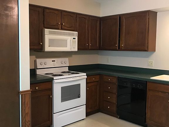 NEW carpeting, large eat-in kitchen, equipped with NEW oven/stove, NEW microwave, dishwasher and NEW refrigerator, full-size washer & dryer, NEW high efficiency gas furnace. Mini blinds throughout. Private rear patio. One car garage with electric door opener. Wooded lot in quiet neighborhood. Owner pays for trash, water, lawn care and snow removal. Tenant responsible for gas & electric.