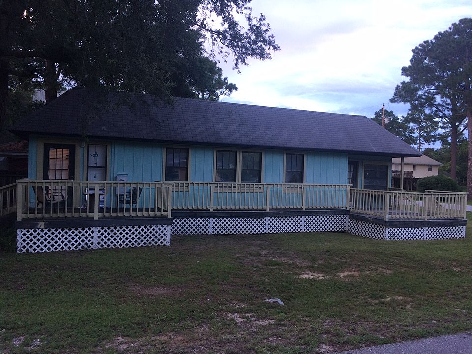 Charming beach getaway located in the hot Bear Point neighborhood. This property is located with character from the exposed wood ceilings to the heart pine floors. Ready to use as is or ready for you to add your personal style. This property sits on a corner lot with room. Bear Point neighborhood offers 2 piers, a key to the boat launch with optional HOA dues, a local community restaurant within walking distance. Don't let this great house slip by. "Home not waterfront but amenities" are.