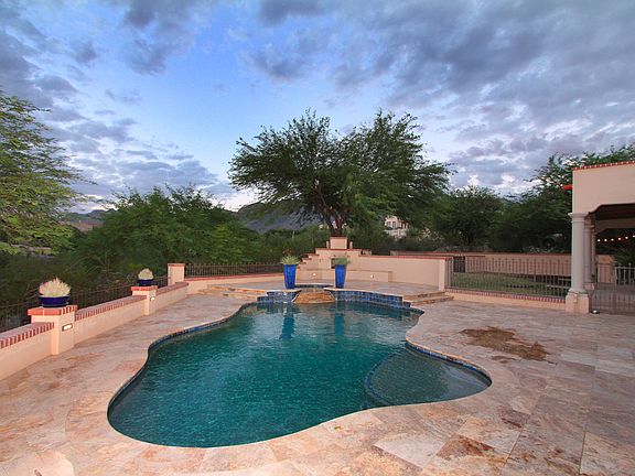 This Mediterranean family estate has 5 bedrooms 5 baths and 3 car garage. Located in the prestigious gated community of La Paloma Estates with city of Tucson and Santa Catalina Mountain views. Built for endurance this quality masonry home offers charm and functional design for comfortable living. Features include: split bedrooms design, formal living/dining room, family room off kitchen, breakfast nook, gourmet kitchen with Sub Zero and Wolf appliances. Four fireplaces, 3 new 19 SEER Lennox HVAC systems, new roof, HURD/Sierra Pacific windows and exterior doors, solid wood interior doors, ideal north/south passive solar orientation of the home, new pebble tech pool surface, built-in barbecue, travertine pavers in patio, situated on a private 1.2 acre lushly landscaped home site with pool and spa.