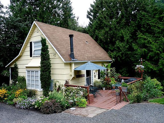 2 BR 1 bath on 2 floors plus laundry in the basement. New windows, updated kitchen and bath. The lot is 3/4 A. of beautiful gardens. Perennials, shrubs, trees, not a lot of work. Very private flag lot, cozy, fun to live in. No smoking, no pets, need great references.