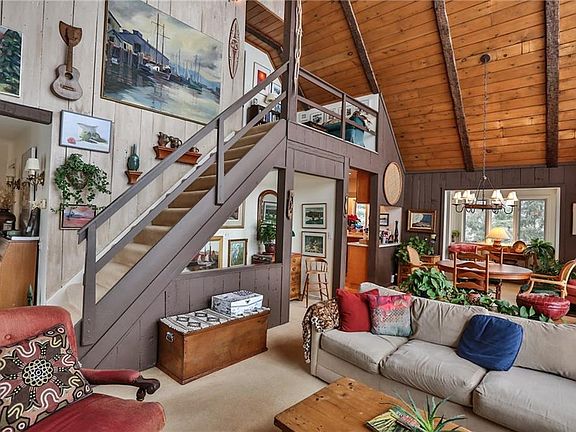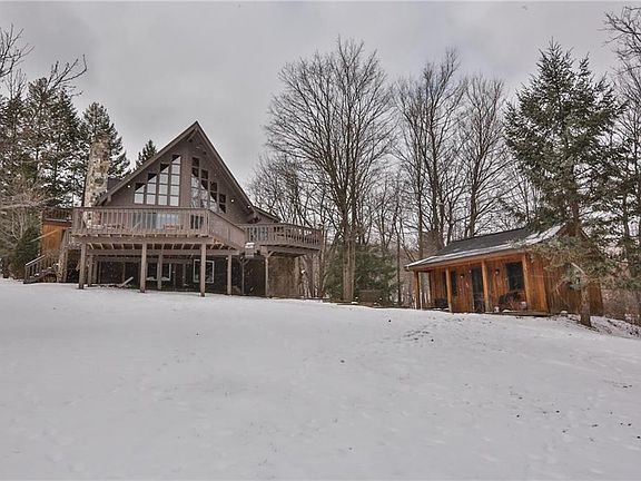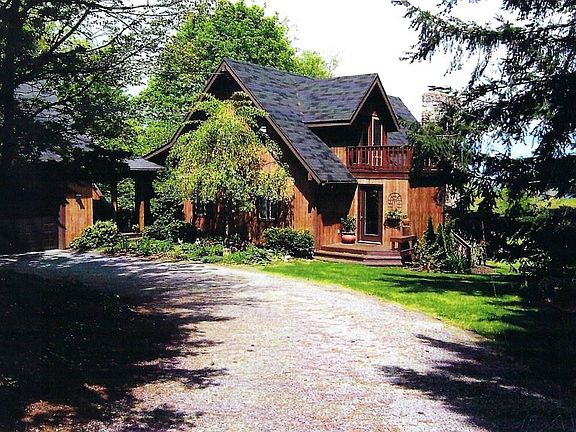 Great home with natural wood siding, multiple master suites with ensuite bath including private 2nd story garage guest suite. Cathedral wood ceiling living/dining room with beams, office/library, kitchen with Subzero, Thermadore, Bosch appliances walk-in pantry. Separate studio with heat and plumbing. Wood burning fireplace in lower level family room, gas fireplace floor to ceiling brick in living room, gas fireplace in guest suite. All on 3.8 beautifully landscaped acres with a creek. Multiple decks and balcony to enjoy the view. Attached 2 car garage with storage, 2 entrance foyers and storage areas throughout the home. Perimeter pet fence, whole house LP generator, water purification system with RO. B&B potential or extended family country getaway. Boat slips or Bristol Mtn. 5 minutes away.
