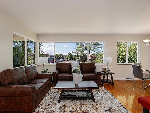Find infinite potential and Mountain skyline views in carefully maintained mid-century brick ranch home! Just 1/2 mile to 'hip & happening' Sloan's Lake, oozing owner's pride and full mod-style original details. Oversized picture windows allow the sunlight to reach every corner of the flowing layout and look out to the mountain skyline. Gleaming hardwood floors extend throughout living areas, hallway/foyer and all 3 bedrooms. Updated Kitchen, new light fixtures and both tiled baths. The full blueprint basement enjoys an ample Family Room with cozy wood-burning fireplace. Spacious Laundry area, 2 workshop/hobby rooms and bonus storage room. Newer hot water heater and stainless steel refrigerator. Private fenced yard with storage shed, sunbathing patio and attached carport. Minutes walk to park, RTD and your choice of favorite restaurant, cafe and bar! Quick access to Sheridan Blvd, downtown, W. Colfax Ave and Denver's iconic Casa Bonita! This rare opportunity won't last long!