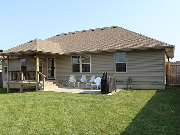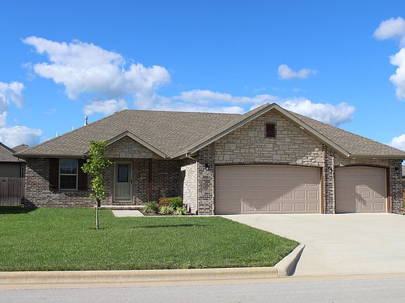 Welcome to this spectacular stone and brick home situated in the highly sought-after Bent Tree subdivision. The front of the house is a sight to behold with it's alluring stone and brick exterior. This well kept home is only 3 years old, ensuring modern features while still having a new home aroma. Inside, an open floor plan and stone fireplace offer a spacious and versitile living area with 3 bedrooms and 2 baths.The split master bedroom ensures privacy with an en suite bathroom and roomy walk-in closet. Enjoy cooking in the kitchen with granite countertops, an island and a gas range/oven with an with an airfryer. The pantry is conveniently placed in the corner for ample storage. Throughout the house, ceiling fans provide comfort, complimented by high ceilings creating an open airy atmosphere. Step out the back door and relax on your covered deck and concrete slab patio set up nicely for summer gatherings. Fuel your grill with a convenient natural gas hookup eliminating the need for a propane tank. Feel at ease with a full backyard privacy fence. A sprinkler system ensures the yard remains pristine, while the fully insulated garage offers energy efficiency. Adding to the allure, you will have soft lighting in the soffits and convenient plug-ins for string lights. Additionally a generator hookup is available offering peace and mind during unexpected power outages. Conveniently located near I44, with a Springfield address and Republic schools, this property offers easy access to nearby amenities. The HOA offers a community swimming pool, playground, tennis courts, and a basketball area. Don't miss your opportunity to make this your dream home. Book your showing today and experience the perfect blend of luxury, functionality, and community living.