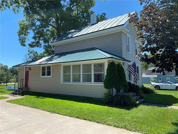Move right into this updated 3 BR 1 bath home with spacious first floor, large LR & DR open to the kitchen. Full bath is on first floor and has 2 linen closets too! Nice enclosed porch with closet. But....WAIT UNTIL YOU SEE THE GARAGE!! Garage is 3 cars wide, with 2 garage doors with openers, large 16' workbench, great for the hobbies. And huge 27'x15' man cave with sliders to a beautiful 16x21 deck! Inside the garage there is a beautiful seasonal half bath! This includes the pool table, foos ball table, the bar (which is made from the front of a truck) bar stools, refrigerator and mounted TV. Fire pit in yard to enjoy. Hot tub doesn't stay. Super house with newer metal roof, updated electric, furnace and hot water heater, but the Garage is EPIC! Don't wait on this. 2020-10-08