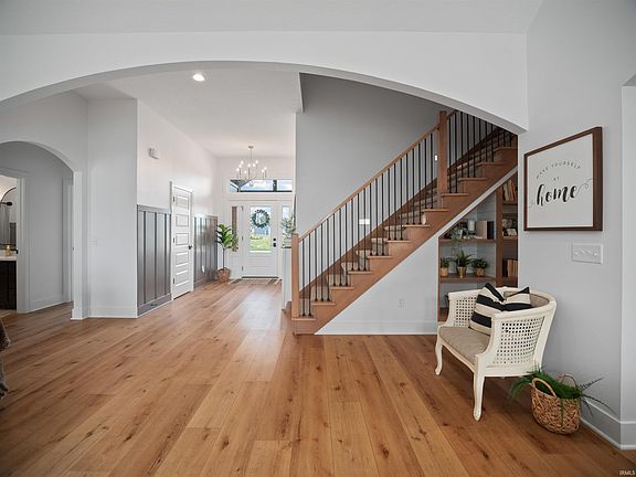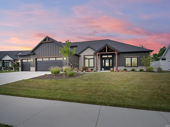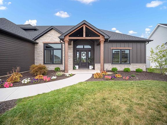 Wow!! Take a look at this AMAZING home!! This home offers a country serene setting that backs up to beautiful corn fields and silos. Enjoy the quiet stillness of country living with custom modern amenities. Better than Brand New! This custom built Fall Creek home is located in the Award Winning NWA (Carroll) school district! This 2800 sq ft one and a half story ranch features a 600 sq ft upstairs Loft with a bedroom and bath. This home features 4 bedrooms, 3 full bathrooms (one bathroom updated), a large Master suite with attached laundry, a Den or 5th bedroom, designated mudroom with walk-through laundry, walk-in closets, 3 car garage, a soaring 2-story great room with big bright windows, a rustic wood beam and a cozy gas stone fireplace with a matching mantle. You'll LOVE the open-concept plan and the built-in luxury features including custom built kitchen and bathroom cabinets, a large kitchen island, quartz countertops, a custom wood range hood, and built-ins. There is also ceramic tile shower and freestanding tub in Master bath, custom ceilings with wood beam features, premium LVP waterproof flooring, custom mudroom lockers, and premium exterior siding and stone. Home comes with recently installed pergola, a custom installed in-ground trampoline, and newly installed mature pine trees for privacy. Don't miss this opportunity to own this move in ready, better than brand new home in a quite serene neighborhood. Great location! Short car ride to hospitals, shopping, and I-69!!