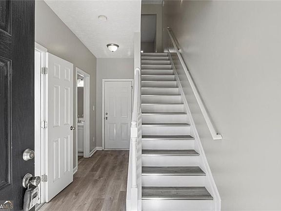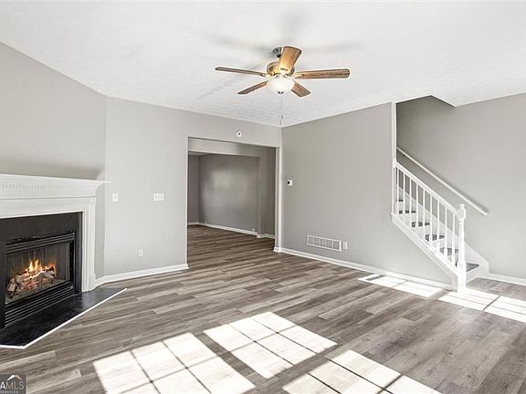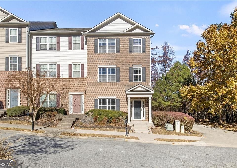 **Eligible for 100% Financing with Preferred Lender! (Restrictions apply - buyer must qualify.)** Welcome to this beautifully updated end-unit townhome offering a smart, open-concept layout designed for both comfort and entertaining. The first floor features a spacious living area with a large fireplace, seamlessly flowing into the dining space and a modern kitchen equipped with quartz countertops, stainless steel appliances, ample cabinetry, and a convenient half bath. Step out onto the deck directly off the kitchen, perfect for grilling or relaxing outdoors. The rear-entry garage provides easy access, and the garage level includes an additional bedroom with a half bath, making it ideal for a home office, guest suite, or flex space. Upstairs, you'll find two bedrooms with vaulted ceilings, including an oversized owner's suite featuring a large walk-in closet and a spa-like bath with double vanity, separate shower, and soaking tub. The secondary bedroom also offers a private en-suite bathroom, perfect for guests or family. A conveniently located upper-level laundry room with washer and dryer included adds everyday ease. Enjoy a low monthly HOA that covers yard maintenance and access to the pool, just a short walk from the home. Ideally located near Camp Creek Marketplace, Hartsfield-Jackson Airport, Downtown Atlanta, Smyrna, West Midtown, and more - this home delivers the perfect balance of style, space, and convenience. Don't miss this opportunity!
