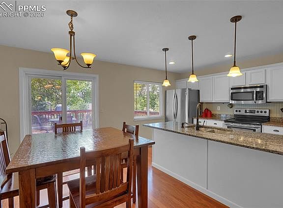 Nicely Updated Home in Popular Cherry Creek 5 School District! Kitchen Boasts Granite Countertops, Stainless Appliances, Opened to Dining Area and Walks Out to Composite Deck. Living Room Features Vaulted Ceilings and Beautiful Wood Laminate Flooring. Master Bedroom w/Walk In Closet Adjoins Tastefully Updated Full Hall Bath. One More Bedroom w/Walk In Closet Finishes Out the Upper Level. Lower Level Plays Host to a Large Garden Level Family Room w/Gas Stove, Bonus Area That Could Be Used as an Office, Game Room or Anything to Suit Your Needs, Updated Bath/Laundry w/Custom Barn Door and Very Spacious Bedroom w/Sitting Area or Possible Division for 4th Bedroom! Huge Backyard w/Mature Trees for Plenty of Shade, Two Composite Decks, Vegetable Garden and Fully Fenced. Roof Replaced in 2018, Newer Vinyl Windows, Evaporative Cooler, Radon Mitigation System, Cherry Creek Schools, Close to Shopping and Restaurants. Welcome Home!