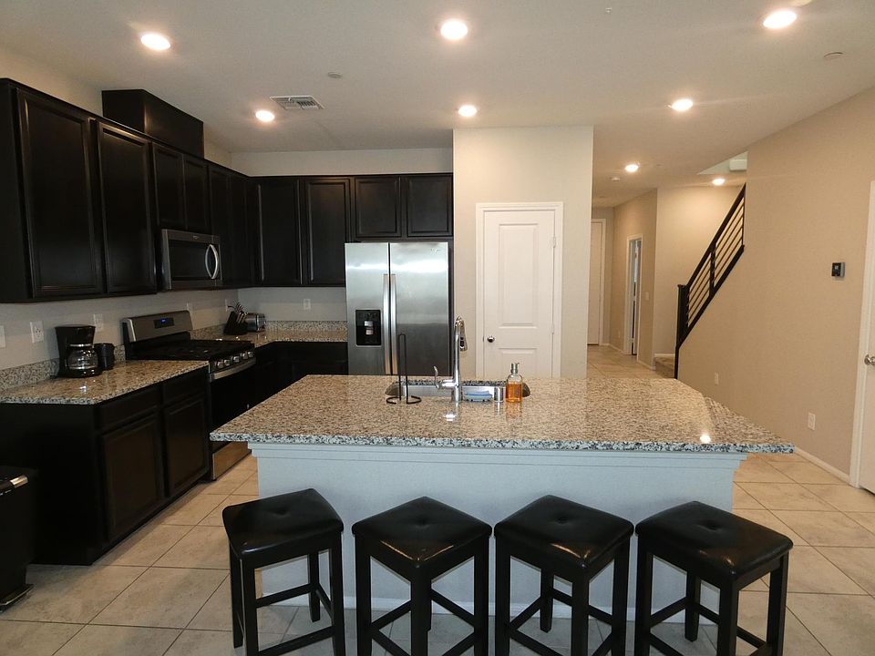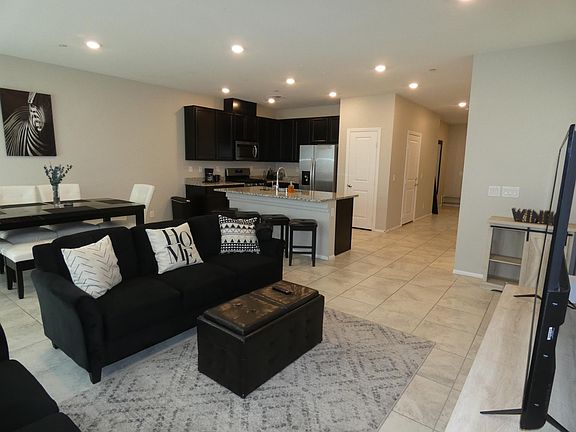 New beautiful home that was built in 2020, Specious 3 bedrooms, 2.5 bath. This is a two story fully furnished home where you need only your personal belongings. Backyard is full turf with outdoor siting, charcoal grill and has stunning view of the Allegiant stadium. Gourmet kitchen with wraparound granite countertop, with bar seating, overlooking great room, and dining room with bar seating, ideal for entertaining. Rental Terms: Rent: $3,000, Application Fee: $89.99, Available Now This property allows self guided viewing without an appointment. Contact for additional information. Lease is 12month or month to month for $3250, a two month ($6000) penalty for breaking lease. Renter is responsible for all utilities, Water, Electric, Gas, Trash and Internet. First month, security deposit and pet deposit if applicable are due on the lease signing date. No smoking inside the home, there is parking in the drive way, a single car garage and in-front of the home.