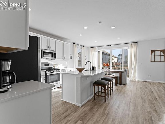 Perfectly positioned facing east with 4 spacious bedrooms, a main level office/flex room, 3 bathrooms and freshly installed landscaping + fencing to host and enjoy with all of your guests. Organically decorated this open concept floor plan features a cozy main level fireplace, luxury vinyl plank flooring, large galley kitchen with quartz countertops, gas range, stainless steel appliances and a 4+ seater island. Enjoy golden hour while having dinner in your dining room or retreat outside to the newly added concrete patio. Upon front entrance is a flex room that makes for the perfect office or study, upstairs includes all 4 bedrooms + bonus loft space and large laundry room. The generous primary suite overlooks the backyard and includes an oversized closet, dual vanity sinks and spa-like glass enclosed shower. Move-in-ready just in time to decorate and enjoy the holidays.