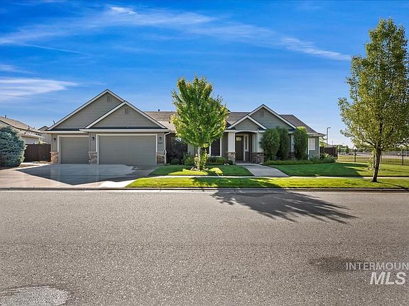 PRICE IMPROVED! Beautiful single level home located in the coveted Bainbridge subdivision. Gorgeous inside and out. You are welcomed into this single level home with warm design elements and neutral tones throughout. The living room and dining room area have large windows which allow abundant natural light to stream in. The open concept design is perfect with gathering and sharing space. Split bedroom layout provides privacy for you and your family or guests. Spacious office / flex room with French doors and soaring ceilings. Master bath offers a generously sized walk in tile shower. Beautifully landscaped. Community boasts a stunning swimming pool and club house. Neighborhood elementary school is just a stone's throw away. Come visit this lovely home and see if it could become your next home sweet home.