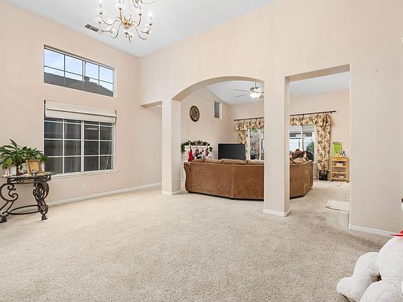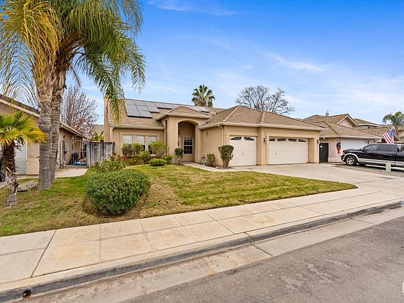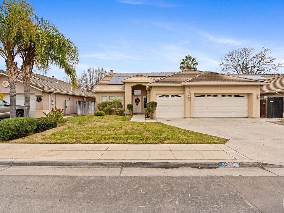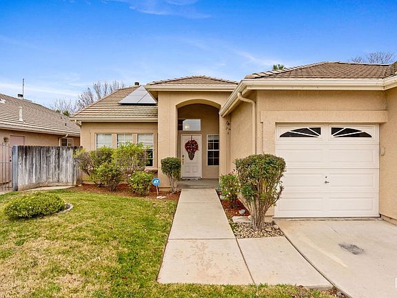 This spacious 2,000 sq ft home has everything you've been looking for! With 4 bedrooms, 2 bathrooms, and a layout designed for comfort, it's perfect for both relaxing and entertaining. Vaulted ceilings add an airy touch to the living spaces, while warm wood cabinetry brings charm and character. The primary suite is a true retreat, featuring a pitched ceiling, stylish details, and a spa-like en-suite with an oval tub, separate shower, and dual sinks. Step outside to enjoy a beautifully landscaped 6,000 sq ft lot with an extended patio, a dog run, and plenty of space for outdoor fun. Other perks include an indoor laundry room with a utility sink, a spacious 3-car garage, and two solar systems. With a full-price offer, both solar leases will be fully paid off, or the price can be reduced for the buyer to assume the solar leases. This inviting home is the perfect blend of style and flexibility don't miss it!