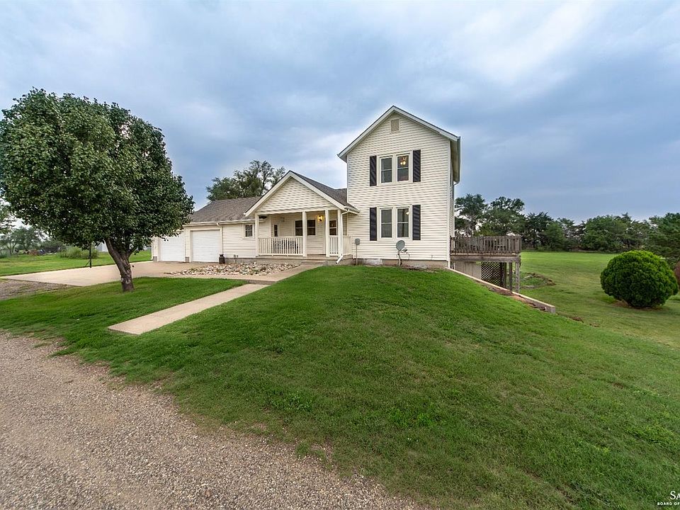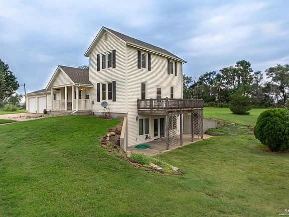 This is farmhouse living at it's best. Surrounded by 31 acres of prairie hay and conveniently located right off a county blacktop road. This 4 bedroom, 2 bath home is ready for a new family. The original house was moved to a new basement in 2001 and features an extra large walkout rec room w/pellet stove, 1 bedroom, bathroom and laundry room & Storm shelter in basement. Main floor has 2 large rooms for living & dining, a country kitchen, master bedroom and optional main floor laundry room and an oversized newer 2 car garage. 2 additional bedrooms & attic storage space upstairs. Recent updates include all new windows and wrapped siding, 3 year old HVAC & wiring, HCI Fiber optic line to the home.