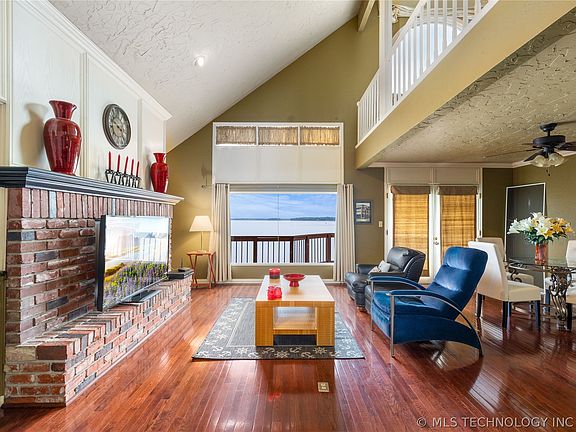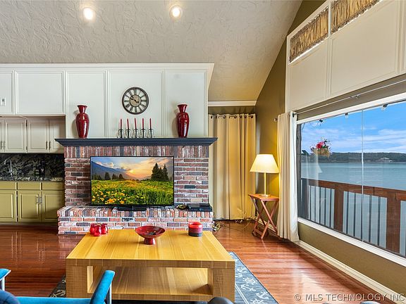 Breathtaking sunsets and main lake views from this upper level 4 bedroom, 3 full bath condo. It has gorgeous hardwood floors, granite kitchen counter, a fireplace and accommodates large groups. HOA amenities include pool, gated entrance, tennis court, water, trash & exterior building maintenance. Located in Island Park, a golf cart ride away from Shangri La Hotel and golf course. NO VRBO's allowed