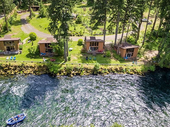 Amazing property ideal for personal or corporate retreats, weddings, B & B, or vacation rentals! Rushing McKenzie River frontage, 6+ usable acres with amazing gardens & 10 buildings. Features impressive 3200 sq. ft. log lodge w/ massive fireplace & great room full of personality & warmth; 4 riverfront cabins steps from the river; 2 bdm guest log cabin w/ fireplace; carriage house/garage; office;covered stage; shop & apartment.