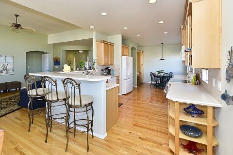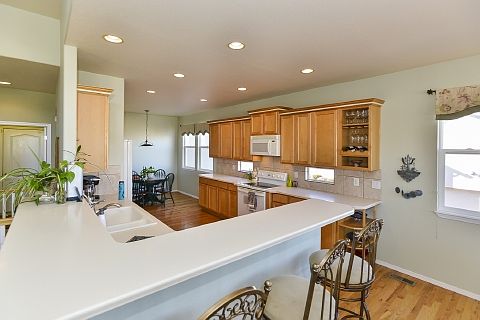 Beautiful 5 bedroom, 3 bath, 3 car stucco ranch home on a quiet cul-de-sac with lots of privacy. Main level living! This lovely home is light, bright and open with a walkout basement. Pristine home boasts extensive hardwoods, vaulted ceilings, spacious kitchen with upgraded maple cabinets, corian counters and hardwoods. The extras are all here too: Master Bedroom offers hardwood floors, 5 piece Master Bath with granite counters and soaking tub, a/c, security, large storage room, workshop in garage, large rec room/theater. In addition, the home has a main level office which could be a 6th bedroom (has a closet area); there is also room for another office downstairs plus a theater room. Other items include structured wiring (CAT 5) throughout, plumbed for wet bar, 2 decks (one covered) and tile roof. There is open space behind you and walking trails across the street. The HOA includes pool, club house, tennis courts, etc. Great ambience, immaculate condition, just move in and enjoy!