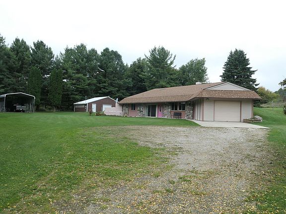 This unique home is a must see! This 3 Bedroom 2 Bathroom home sits on 6.1 acres on a paved road. Buyers will enjoy the beautiful natural gas fireplace, walk in closets, main floor laundry and spiral staircase that leads up to the family room and game rom. The 24x24 Pole barn with 10ft lean-to and 32 x 18 car port are ready for all your storage needs. The Upper level includes a 19x23 game room, 16x23 family room and a 15x16 reading nook. The Main level includes the living room, dining room, kitchen, 3 bedrooms, 2 bathrooms, office room, and the laundry room. Home has been pre inspected.